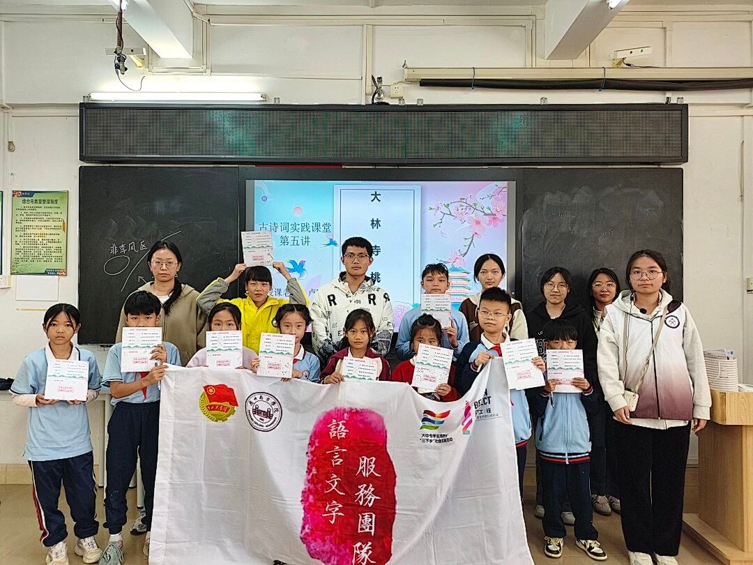 2025年10月23日,122cc太阳集成游戏语言文字服务团队在齐欣老师的带领下,前往从化区善施学校,开启了一场新的古诗词的学习之旅。本节课的小老师是122cc太阳集成游戏2023级汉语言文学专业的卢晴同学,让我们跟随她的脚步,走进白居易柳暗花明,又见芳菲的暮春奇遇。