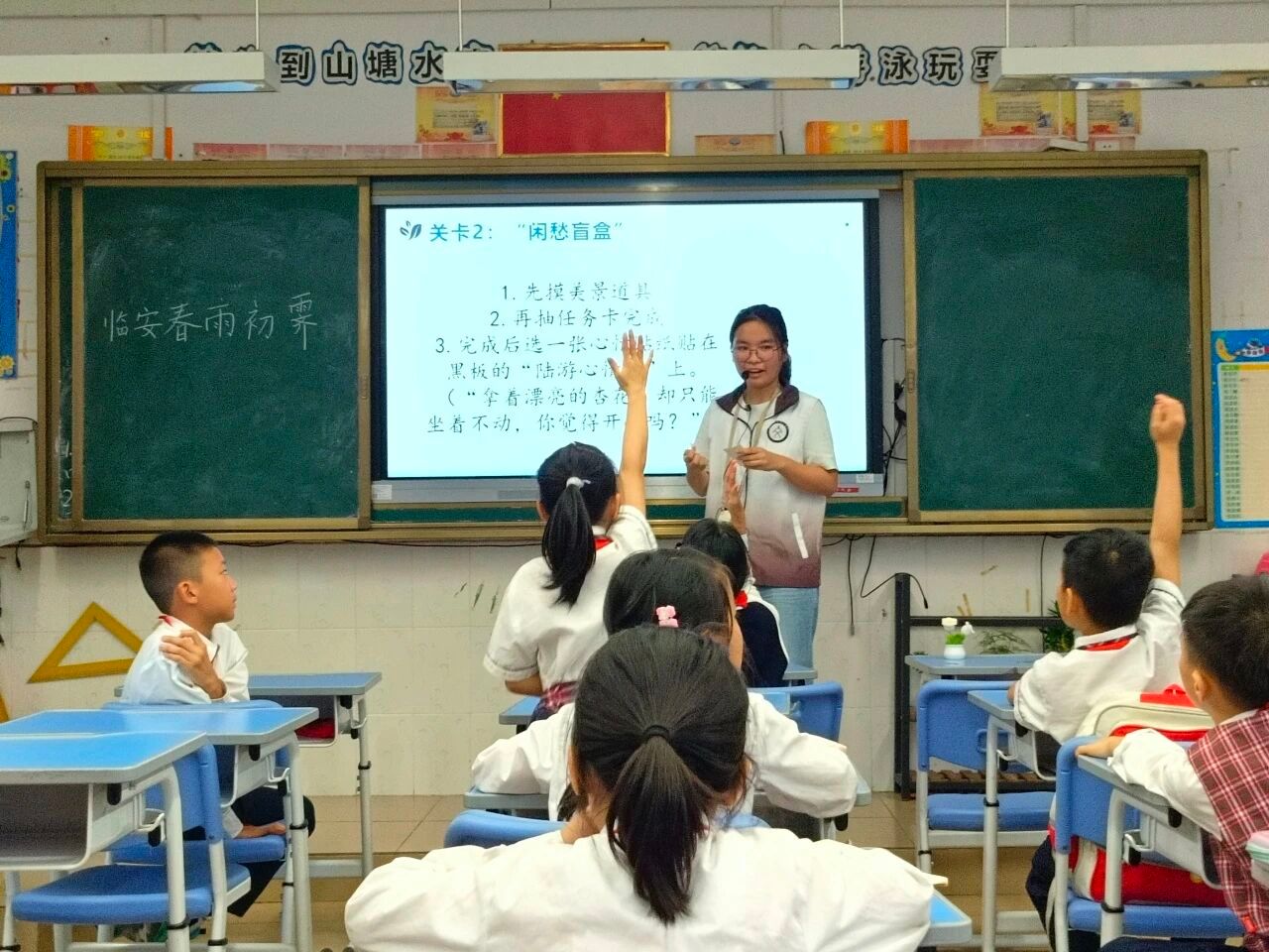小卢老师的课堂以趣味互动贯穿始终,从身份卡填空到“闲愁盲盒”游戏,用图片、视频等鲜活形式拆解了陆游的诗词与人生,让原本抽象的“无奈惆怅”变得可感可触。孩子们从初入课堂的好奇踊跃,到朗读时的情绪沉潜——眉头轻蹙的低落、放轻的语调、悄然的叹息,都藏着他们对陆游的共情。这堂古诗词课,不仅让孩子们读懂了陆游的诗,更让他们走进了诗人的心怀,让略显遥远的古典情怀,在互动与共情里变得鲜活温热。