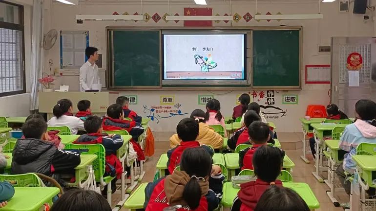 我是夏吉良,来自22达人中文班。对于初学诗歌的孩子来说,想要读懂李白诗歌是一件难度不小的事,然而后面还要讲很多李白诗歌。所以本节课叫作“李白概说”,意思是抛砖引玉,先给大家做一个铺垫,方便后面孩子们学起来更加顺畅。知人论世,尚友古人。任何作品甚至是作者都是一定社会环境下的产物,因此要读懂李白的诗歌,就绕不开其诗歌的创作背景,就绕不开李白本人的生平事迹。当然,在此基础上,通过词义的解释、有感情的诵读、诗歌整体内涵的把握,寻寻渐进地引导小朋友们深入体验李白诗歌所构建的想象世界也是必不可少的。我发现,在讲解过程中不时穿插一些人物的逸闻趣事,更能引起小朋友们对诗人的强烈兴趣。十分荣幸可以在新的学期给流溪小学的孩子们上李白专题的第一课。打头阵这件事并不容易,但孩子们求知的眼神和积极又充满善意的互动使上台的我忘却了紧张——这一堂课是他们教会了我许多。如果我的教学能让他们在未来真正理解李白时少一些阻碍,那么我的目的就达到了,这就当做是我给“小老师们”的一点小小回礼。衷心祝愿这些可爱的孩子的成长无忧无恼!