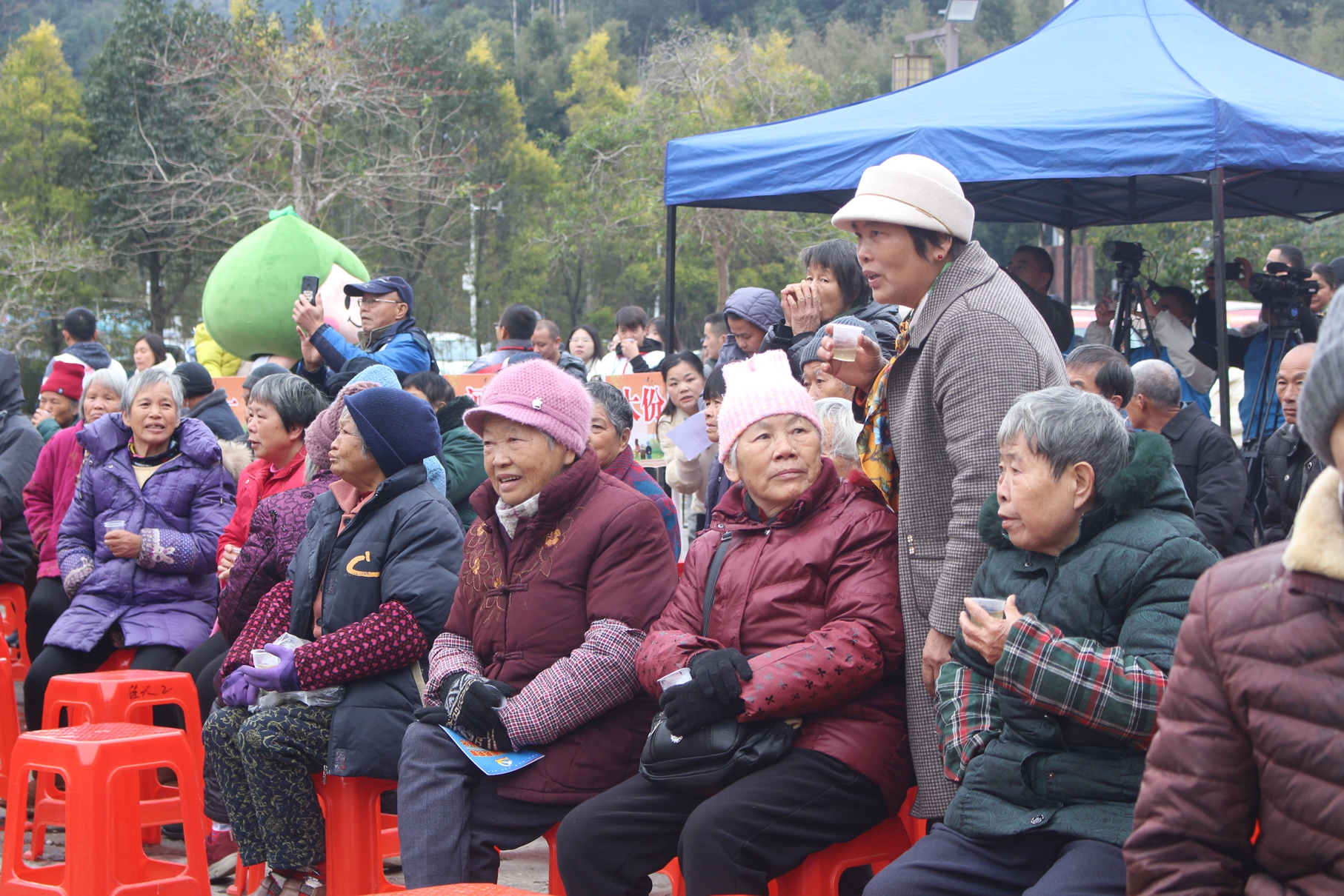演出过后,所有演职的师生与莲麻村的全体村民共同围餐。敬老节也是团圆节,冬至,到来的不是寒的冬,而是暖的情。一位负责视频和拍照的说到,“这次有幸来到村镇为乡民和老人们表演,看到了政府为文化传播和传承做的努力,看到了弘扬敬老爱老传统美德的重要价值,而且也深刻体会到了我们作为大学生可以为基层、为社会服务贡献的力量范围,更对于未来从事媒体工作或政府基层工作的我的职业发展有了新的启示。“一位学生演员说到,”穿着表演服表演并与老人们一起共进围餐的时候,像极了一个郑重的仪式。在这样的仪式中,我们获得的不仅仅是口舌肠胃的快活感,看着乡亲们开心的容颜,有一种好日子源远流长的幸福感,以及顺从自然节律展开生活的那一种踏踏实实的存在感。这个冬天,好冷,但来这一趟,很值得。"
