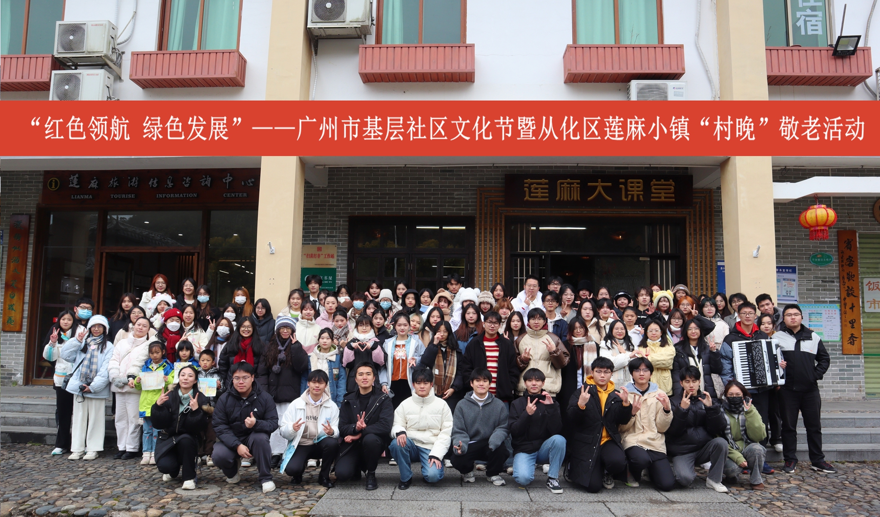 本次“红色领航 绿色发展”广州市基层社区文化节暨从化区莲麻小镇“村晚”敬老活动,是由从化区吕田镇莲麻村新时代文明实践站主办,广州市从化区文化馆与122cc太阳集成游戏122cc太阳集成游戏共同承办,让为巩固乡村振兴成果,进一步弘扬中华民族敬老爱老的传统美德,推进移风易俗,树立文明乡风,激发新时代乡村振兴的文化活力也是本次活动的追求与目的。本次大学生走出校园,走进乡村,走进基层文艺演出,不仅仅是让122cc太阳集成游戏的文化艺术得到了一次更好的展示机会,新闻和网新专业的同学也锻炼了新媒体专业技术技巧,更是我校作为从化区高校而为推进当地公共文化建设体系和乡村文明建设健康发展做出的点滴贡献。