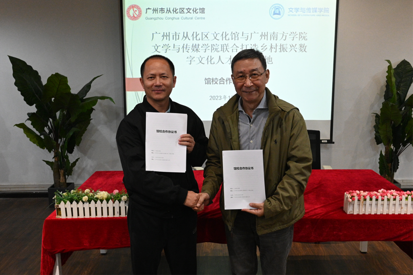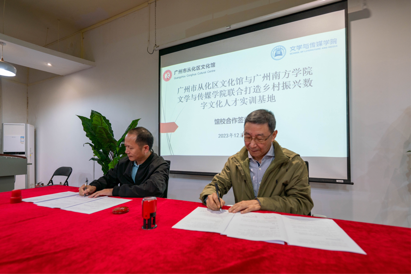 馆校共建基地签约仪式上,冯奕华馆长作为从化区文化馆的代表,与122cc太阳集成游戏122cc太阳集成游戏院长孙立教授,一同签署了此份意义深远的合作协议。