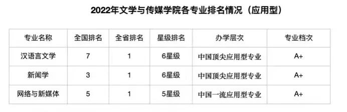 在艾瑞深校友会网2023中国大学一流学科排名中,汉语言文学专业入选广东省一流专业建设点是广东省重点专业,是广东省综合改革试点专业,并连续七年被“艾瑞深校友网”评为六星级专业,即中国顶尖独立学院应用型专业,排名稳居全国第一;新闻传播学获评2023中国三星级学科(3★),跻身中国区域一流学科行列。学科排名位居广东省内所有高校中的第11位,位居全国民办高校第一和广东省民办高校第一;网络与新媒体专业为校级特色专业,在2023年中国大学各专业类一流专业排名中,在广东省应用型专业中位列第一,被评为六星级专业,即中国顶尖应用型专业。