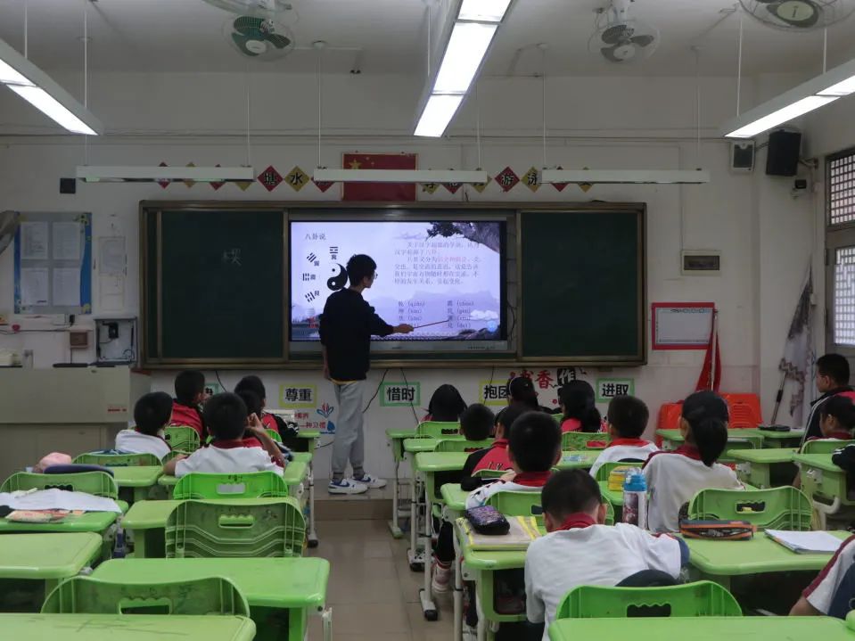了解汉字的演变之后,小邓老师还向小朋友们介绍了八卦说。他以有趣的视频辅助教学讲解,并设置了抢答环节,激发小朋友们对学习的积极与热情,也帮助他们更好消化课堂知识。