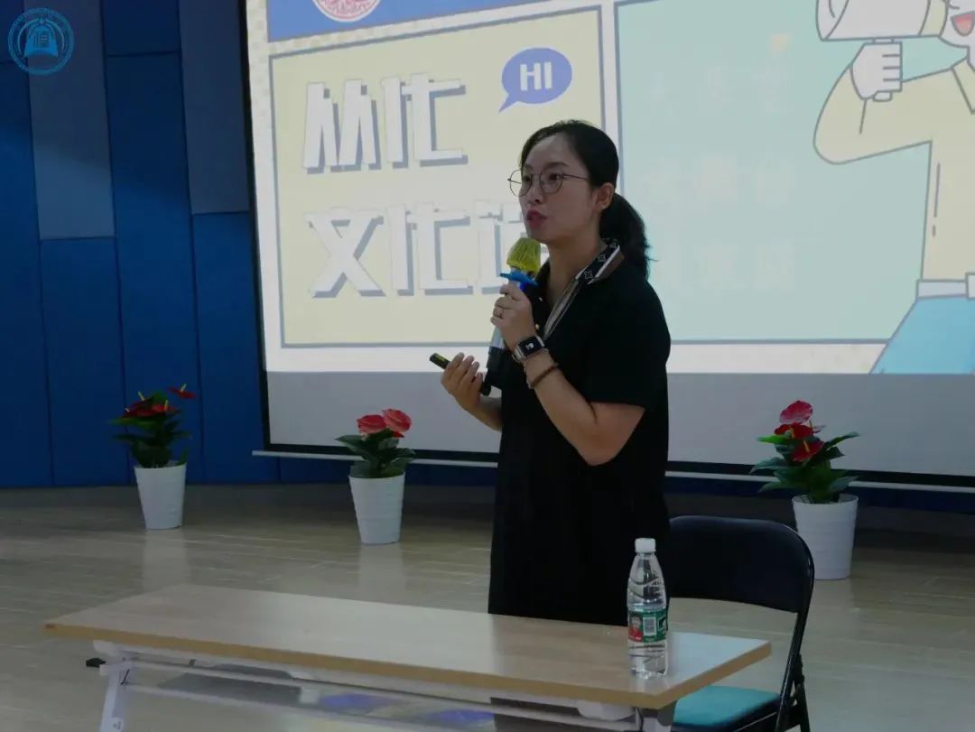 接着,从化区文化馆副馆长余钿钿开始了从化区文化馆文旅志愿者的招募宣讲。她从基本情况、部门职能、文化大课堂、文艺大舞台和文旅大家庭五个角度入手,整体介绍了文化馆的各种部门、课堂,以及多姿多彩的表演活动。其中,余副馆长着重介绍了文旅志愿服务工作,尽力让在座的同学都能清楚的了解到文旅志愿者的工作和要求,并在最后鼓励和呼吁在座同学加入文化馆,成为文旅志愿者的一份子。