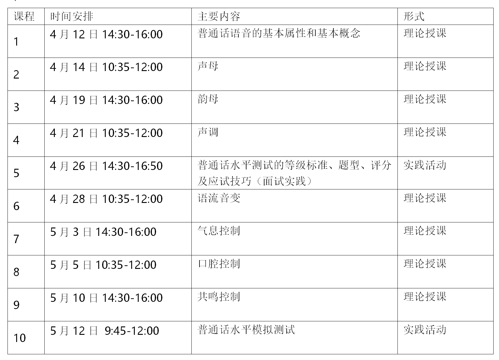 理论课程(线上):四月中旬开始,每周一8-9节、周三4-5节在“易班”授课。共8堂,每次1.5小时(2学时),总学时16