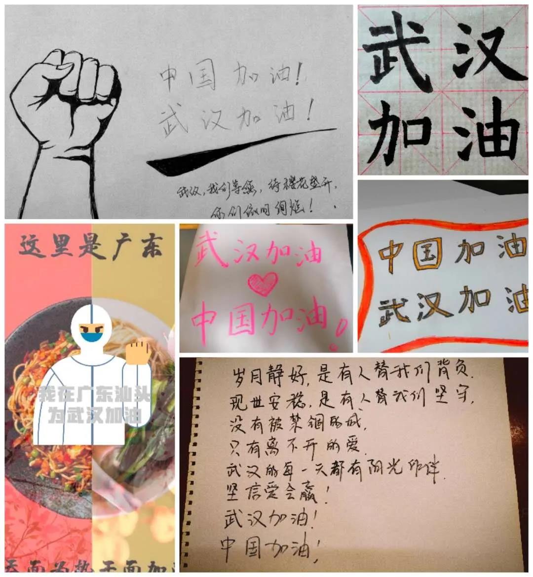 团员们把个人特色和班级特色结合起来,制作了不少好看“武汉加油”图画。有的团员通过书写毛笔字,有的团员则通过画画,有的则两者结合,创作出不少好看的作品。