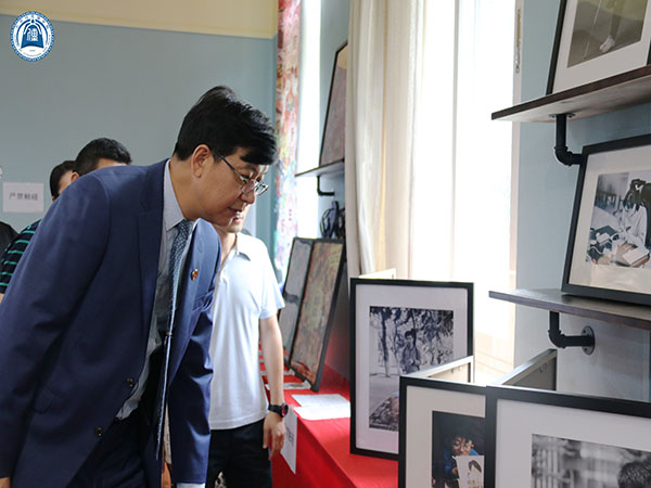 开幕仪式前,黄南松校长助理及各位嘉宾老师前往1教103观展学生作品,由此次作品展的指导老师向大家分享和讲解每个优秀作品背后的故事。