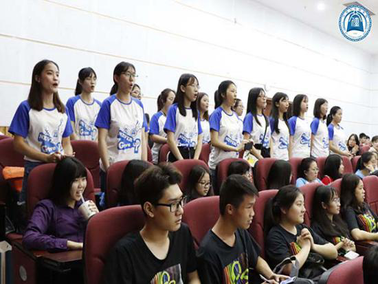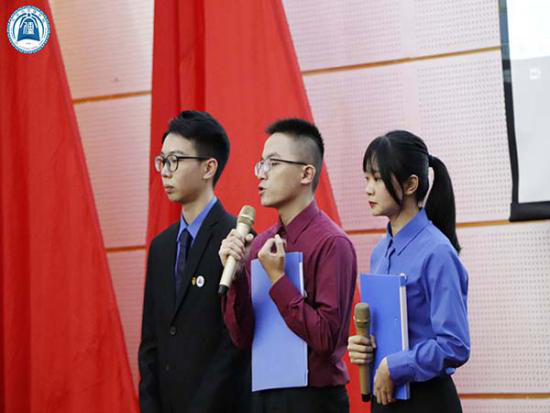展示的结尾,敢闯敢拼的文传精英们全部起立,以高呼“以文会友、以学促做、与时偕行、以传解惑、以媒为镜”的口号结束了展示,观众席掌声不断。在接下来的三分钟答辩环节中,对评委提出的疑问,学生会代表一一作答。