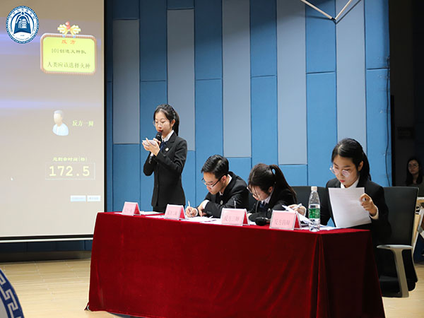 随后,班际辩论赛表演赛正式开始。此次辩题为:在前途未明的情况下,《流浪地球》中的人类应该选择“希望”还是“火种”。在开篇立论环节,正方持“人类应该选择希望”的观点。反方则持相反观点“人类应该选择火种”。