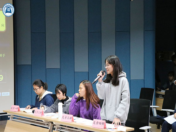 双方针锋相对,互不相让,经过立论陈词、驳论对辨、盘问小结、自由辩和总结陈词等五个环环紧扣的激战环节,为大家奉献了一场有理有据的精彩辩论。