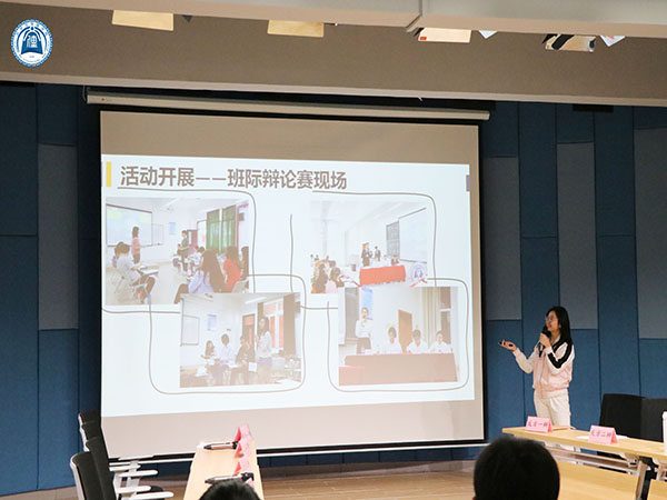 悬河辩论队副队长晏铭婉同学为大家介绍了悬河辩论队日常的辩论培训和近期开展的活动,并展示了其历年来取得的成绩。她提到定期开展班级辩论赛等活动是为了让同学也能感受到辩论的乐趣,吸引更多的同学参与进来,得到一定的锻炼。