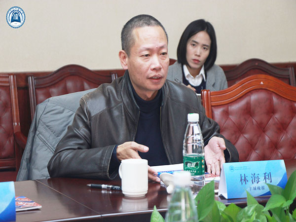 羊城晚报社总编辑林海利对于我院“一专多能”的人才培养方向给予高度评价。对于媒体该发展什么,怎么发展问题,林总编以《羊城晚报》为例,指出两个转变:一是注重新闻传播,将报纸逐渐向新媒体方向转变;二是注重文化产业,打造自身文化品牌,建立羊城创意产业园。林总编指出,注重学生文化营销策划能力和广告宣传能力的培养将有助于我院新闻学专业的人才培养与建设。
