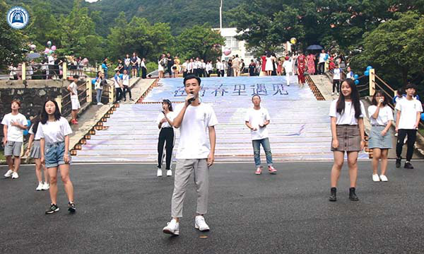 为表达感激之情,毕业生们特意为我院赠送了毕业礼物——一块刻着“文以载道”的刻石。这块刻石凝聚了他们对母校的一片深情。接下来,18届毕业生代表还为母校献唱了《青春不散》歌曲串烧,唱出了对大学时光的不舍及对未来的展望。