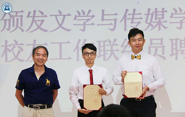 在大学四年中,同学们都付出过很多汗水与艰辛,这些努力终究会得到回报。我院为2018届荣誉毕业生颁发荣誉证书,也为考取国内研究生的同学颁发了奖励。为了在毕业后同学们和学校能够更好地保持联系,学院特别聘请了2名同学担任校友工作联络员,并给他们颁发了聘书。