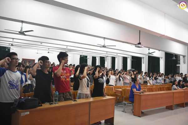 动员大会在全场师生共同奏唱共青团团歌中拉开序幕。李克和教授肯定了团总支、学生会去年的工作表现,表达了对新干事们不断巩固专业知识,锻炼组织能力、演讲能力以及社会适应能力的期盼。