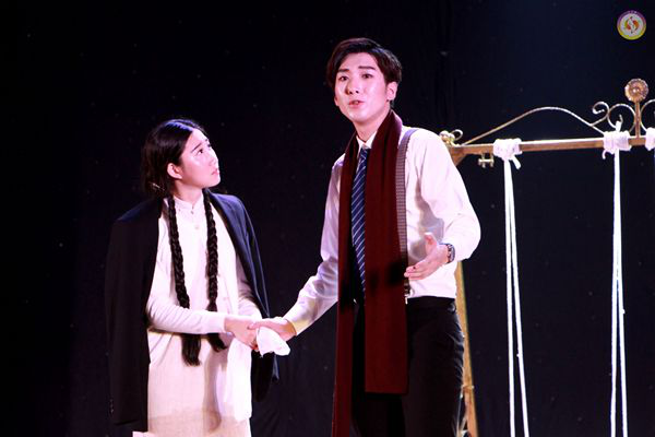 两种不同的剧目穿插连接,成就了一出古今悲喜交错的舞台奇观,话剧专有的陌生化效果与夸张的行为动作被淋漓尽致地表现出来,以“追寻”为主题贯穿着两个看似互不相关的故事,引起了思想上的碰撞,紫阳戏剧社的全新演绎带给我们新的震撼,新的感动。整个话剧的构思以及人物的表现,均展示了我系同学丰富的创造力和精湛的演技,获得了观众的一致好评。