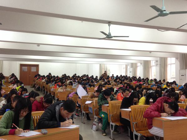 赛上,同学们认真思考,积极作答,15分钟时间完成了整个默写过程。我系师生均十分重视这次比赛。本次比赛活动由李主任亲手策划,从10月底就开始筹备,从选题到出题都是经过精心准备。比赛选题范围广,并严格限制比赛时间,因此能考察出学生的真实水平和知识面的广度。为此,我系2014级汉语言专业本学期举办了每周一次的“朝夕计划”诵读会,鼓励同学们坚持背诵、学会背诵、享受背诵古诗词。