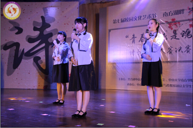 最终,经过综合评分,“回亿之丞”组合以67.8分荣获冠军,“梦之声”组合与“南芳年华”组合分别以65.5分和65.4分获得亚军和季军。本次大赛当晚的诗歌朗诵外,还设置了原创诗歌大赛。该比赛吸引了全校43份作品参与,最终我系唐锋同学的《镜里镜外皆世界》、黄秋娴的《清水》、邱权亮的《听风》荣获最佳原创作品奖。至此,“青春梦·求是魂”诗歌朗诵大赛决赛圆满落幕。