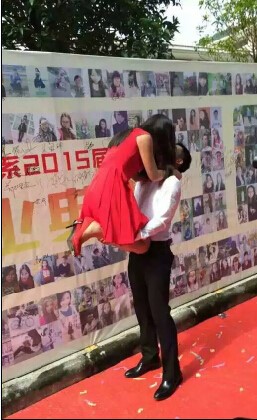真快啊,今天我们俩就毕业了,但我们的心靠得更近,手握得更紧。毕业不分离,让我们挽着手,就像真的走向婚姻的殿堂那样,走完这条红毯!