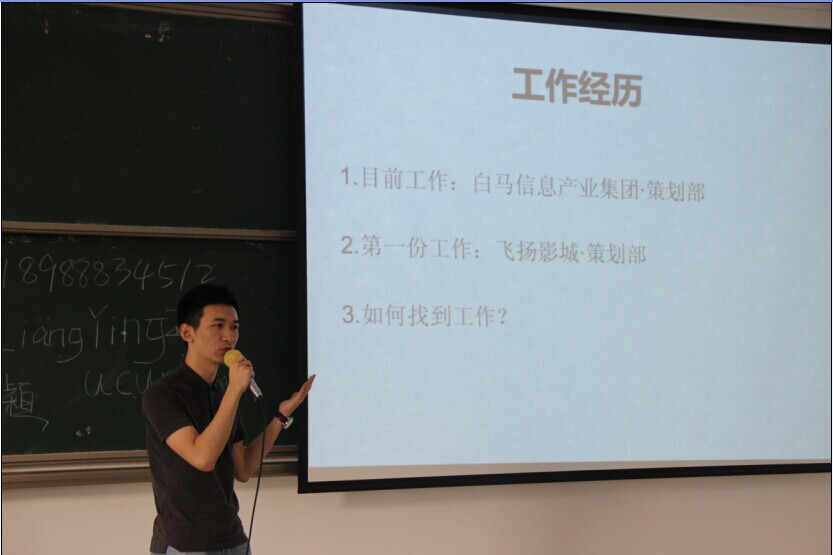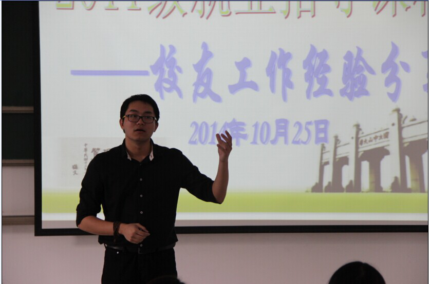 文学与传媒系校友工作的成果近年来已逐步显现,校友为毕业生提供了及时的就业信息、推荐工作,帮助毕业生更好地步入社会。为进一步加强校友工作,更好发挥校友在服务在校生求职工作方面的作用,文学与传媒系于2014年10月25日开展了优秀校友求职经验的分享活动,邀请往届优秀校友回校与应届毕业生分享自己的求职和工作经验。