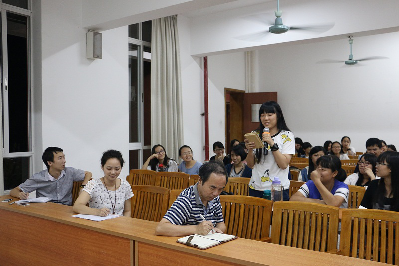 首先,各级学生代表就教学内容、教学安排、教学方法等问题畅所欲言。在教学内容上,13级汉语言文学的同学就《中国古代文学史》一课程表示,因中国古代文学史阅读量大,希望老师在讲课过程中的重点能更突出些。13级新闻学学生代表提到,部分公共课老师上课内容单一,与现实生活脱节。还有12级的学生代表希望《美学原理》及《摄影基础》课程能多涉及美术鉴赏、东西方美术特点对比等内容。针对课室安排,有13级新闻学同学表示,有连续的两节课分别在中区和西区,地理位置跨度较大,给学生的缓冲时间较少。同时,各级学生代表还对不同老师的教学方法表达了自己的看法,有学生还对部分任课老师的教学给以很高的评价,将老师好的教学方法提出来与大家分享。