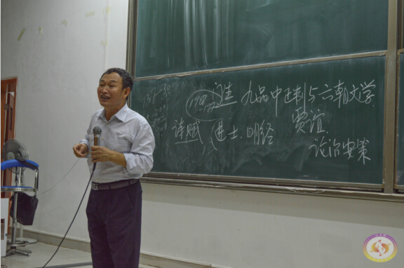 5月24日晚7点半,由中山大学中文系许云和教授开设的《九品中正制与六朝文学》在1教105顺利开讲。许教授用平常熟知的例子,深入浅出地讲述了九品中正制这一政治制度对六朝文学的影响。