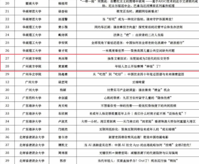 本次大赛自征集公告发布后,受到广泛关注与支持。经赛区组委会初审核查,我院在数据新闻和AIGC两大类别中均有亮眼表现,多组作品成功入围。