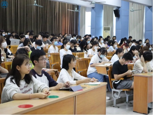 课上,同学们认真听讲,补充笔记,踊跃举手发言,与周老师共同探讨问题,营造了开放自由的课堂氛围,使得课堂变得活跃起来了。课后,同学也积极向老师请教自己的疑惑,周教授一一为他们做细致的讲解。
