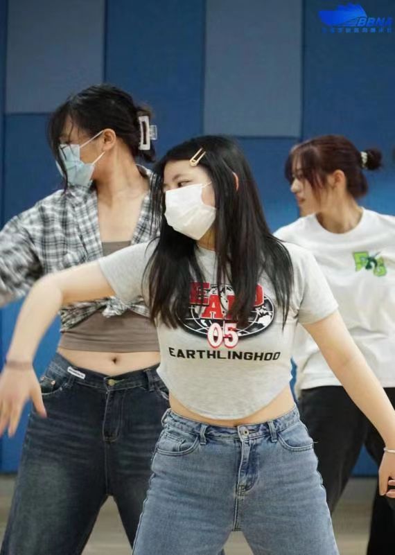 如果说民舞组的构思源于主角的表达,那街舞组则为视觉上的冲击牵引着观众的情绪。丽影街舞组针对网络暴力这个具有思考价值的主题,融入了一些舞台设计巧思。在第一个舞台中为了突出《惊蛰》主题,几位舞者身着黑袍外套,象征着网络恶评对女主角攻击、侵蚀。舞蹈动作体现了女主角内心被恶意评论折磨时的挣扎。第二个舞台区分了服饰的颜色,“白袍人将黑袍人的外套撕扯开,代表正义的力量会战胜恶评和网暴,女主角重获新生。”街舞负责人蔡梦云说道。