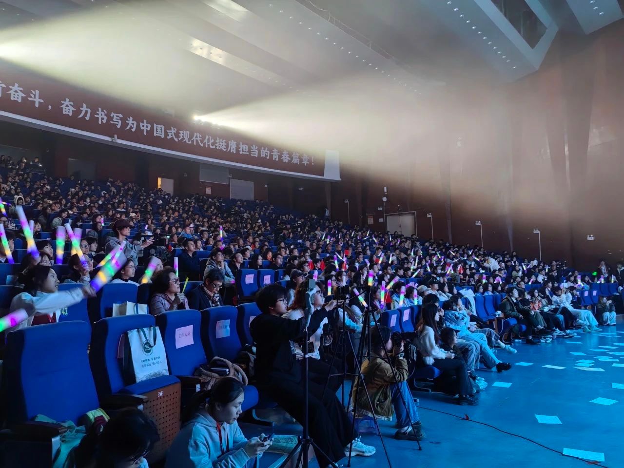 本次展演历时两个小时,现场观众共计900余人,晚会同步线上直播,累计点赞数20000+,共计 209名学生工作人员保障晚会工作,参演师生近200名,原创舞台剧《启明》的剧本长达万字,除此以外,还有14个特色节目,呈现出新中国不同阶段的时代风貌,为观众带来了一场跨越时空、震撼人心的视听盛宴。