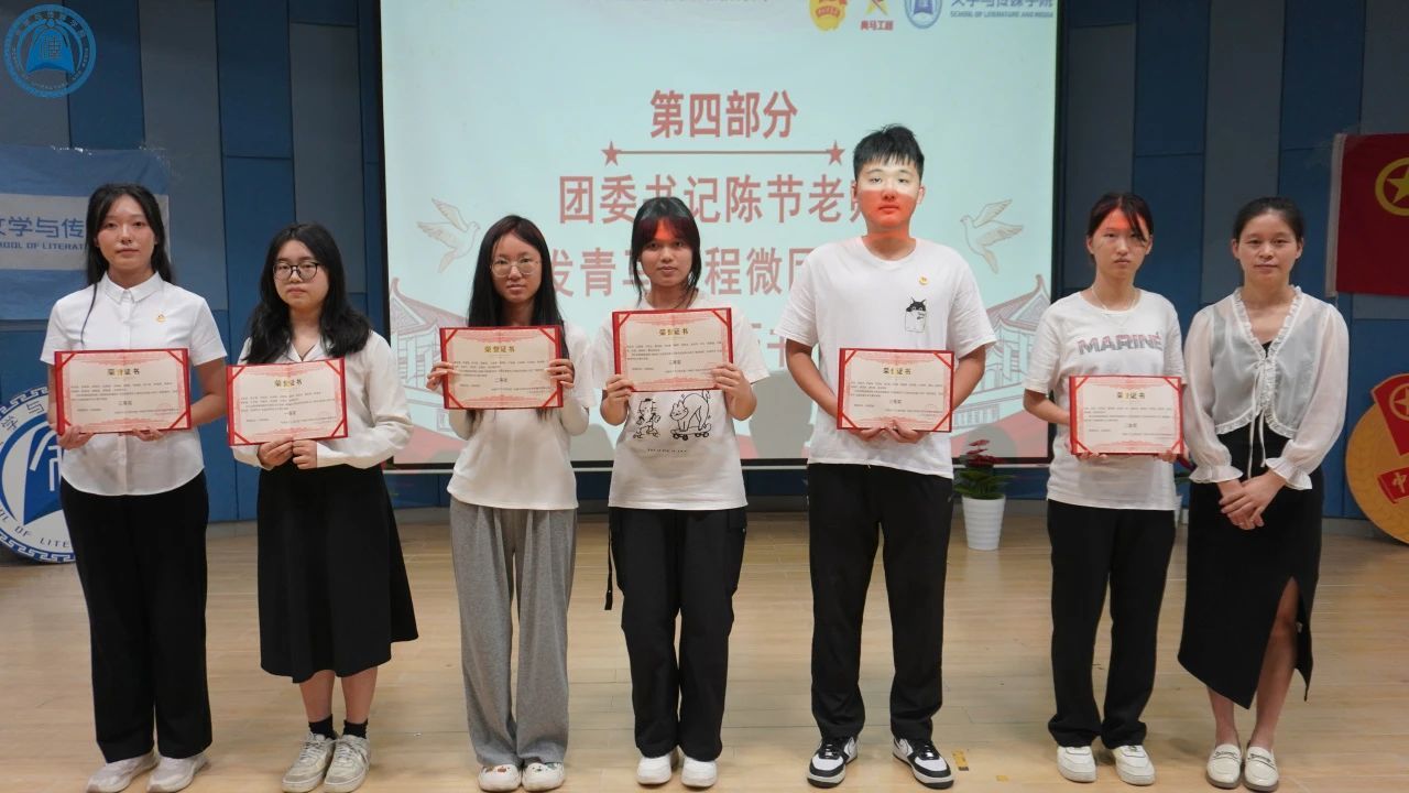 颁奖环节,122cc太阳集成游戏团委书记陈节老师颁发青马工程微团课比赛荣誉证书,各组代表上台领奖。