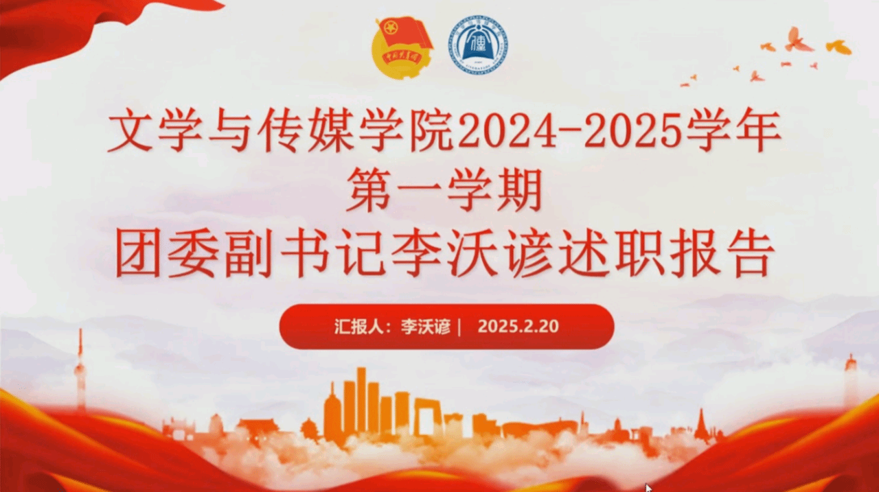 团委学生副书记李沃谚、高思杰、杨乐斌和学生会执行主席陈子怡、潘子怡同学经过一学期的认真工作,严谨地进行自我总结,分别从工作回顾、问题总结和未来展望等方面进行了述职报告。过去的一个学期中,团委学生会组织了多项受同学们欢迎的活动,如《启明》文传实践展演、第四届“芳蕤杯”诗词大赛、校友考研经验分享会等,均获得热烈反响。