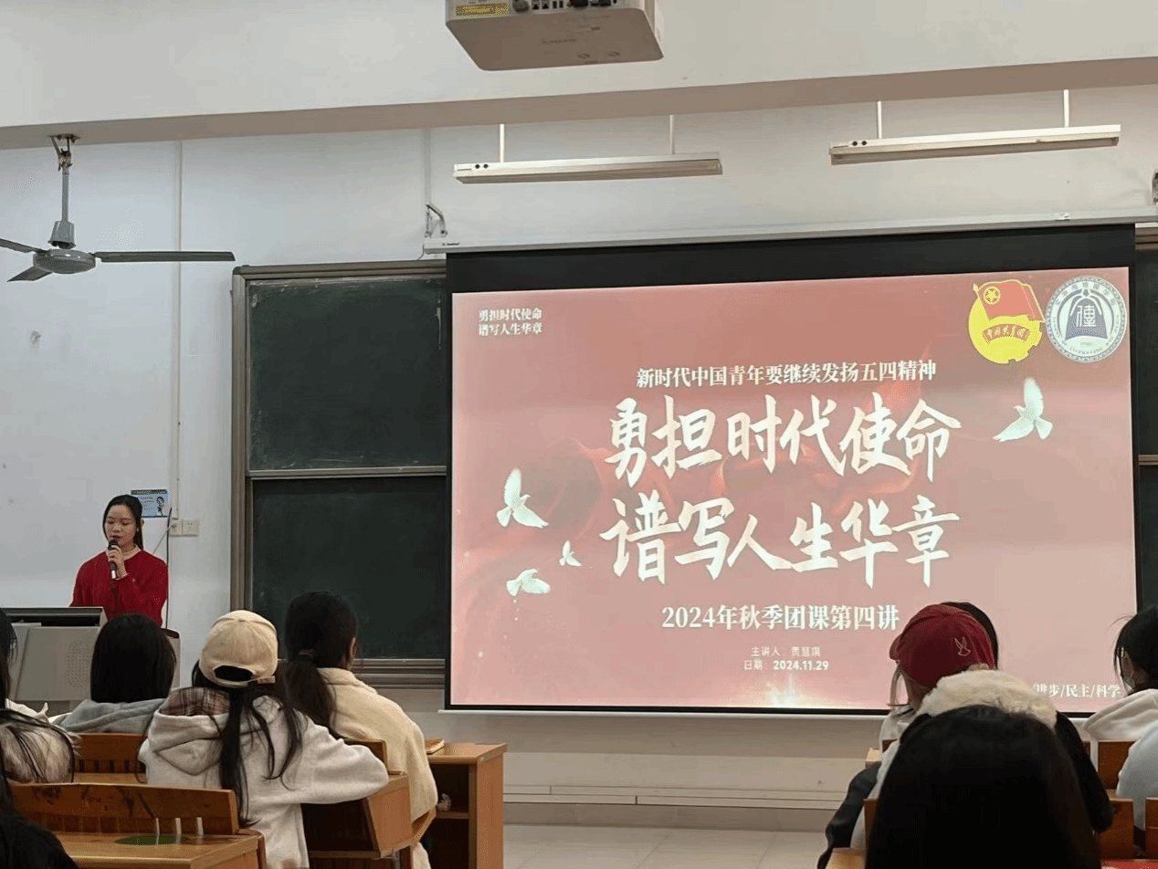 2024年11月29日,122cc太阳集成游戏于一教201开展了2024年秋季第四次入团积极分子团课培训,本次团课由汉语第二党支部会议组组长黄慧琪同学担任主讲人。