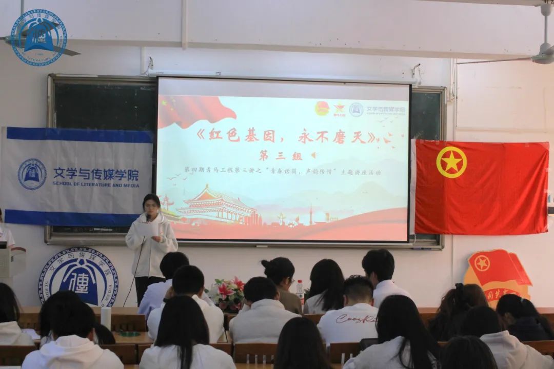 第二部分是“朗诵传播红色记忆”。六组青马学员选出代表,依次上台朗诵红色记忆片段。六位代表嗓音各具特色,从中能够感受出他们心中的爱国热情和学习成果。在最后一位同学朗诵完毕后,现场响起雷鸣般的掌声。随后,吴老师进行点评与总结,对于同学们的学习成果表示充分的肯定与鼓励。最后,全体学员进行合照留念,记录这一重要的时刻。