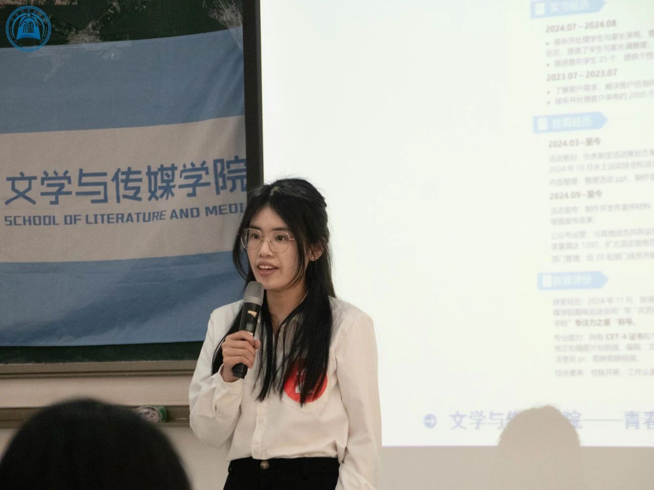 此次决赛环节高度还原真实的求职环境,全面考验了选手们的综合能力。在成长赛道环节,气氛紧张而热烈,选手们逐一登台,首先进行自我介绍,随后随机抽取职场情景模拟类题目进行现场作答。唐熙彤同学作为开场选手,以其出色的表现点燃了比赛的激情。紧接着,廖顺华、吴昊、罗茜、胡晓婷等选手也依次展现了他们的才华和应变能力。