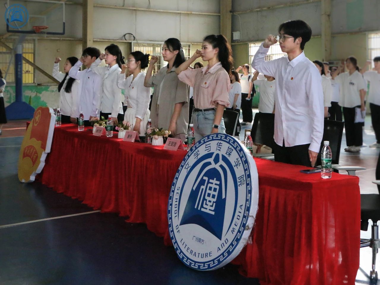 紧接着,原月老师授予青马工程队旗。全体学员对着团旗进行庄严宣誓。