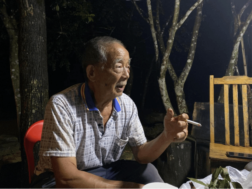 晚饭后,被村民冠以“仙溪王熙凤”称号的超伯招呼团队成员到家中做客,在大功率白炽灯照亮的树下,团队成员开始了对超伯的访谈。超伯今年80岁,却没有丝毫暮气,言谈举止间透着乐天与活力。2024年末至2025年初,他全程参与了“仙溪聚乐园”竹建筑的搭建,更是是搭建队伍中的积极分子,也颇善竹编。在谈到“仙溪聚乐园”时,他流露出难以掩饰的自豪感:“能做成这件事,说明我们仙溪的老人家真是很团结的。”