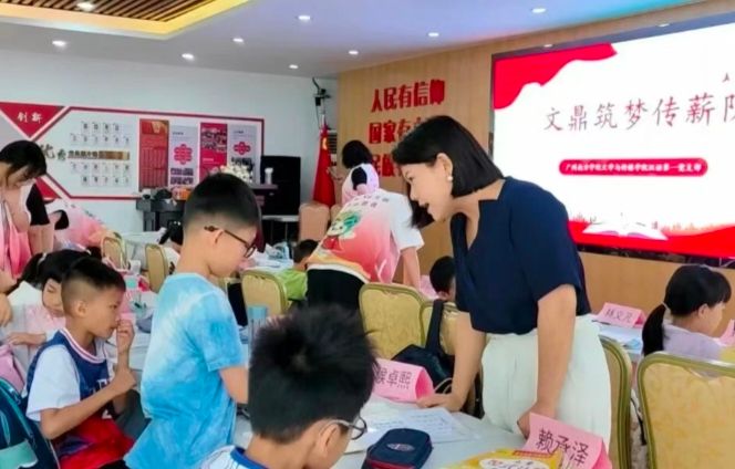 文鼎筑梦传薪队的队员们不仅给小朋友们上课,还作为助教协助容桂街道振华社区党群服务中心的老师们进行绘画、太极、篮球等特色课程的开展,维持好课堂秩序。