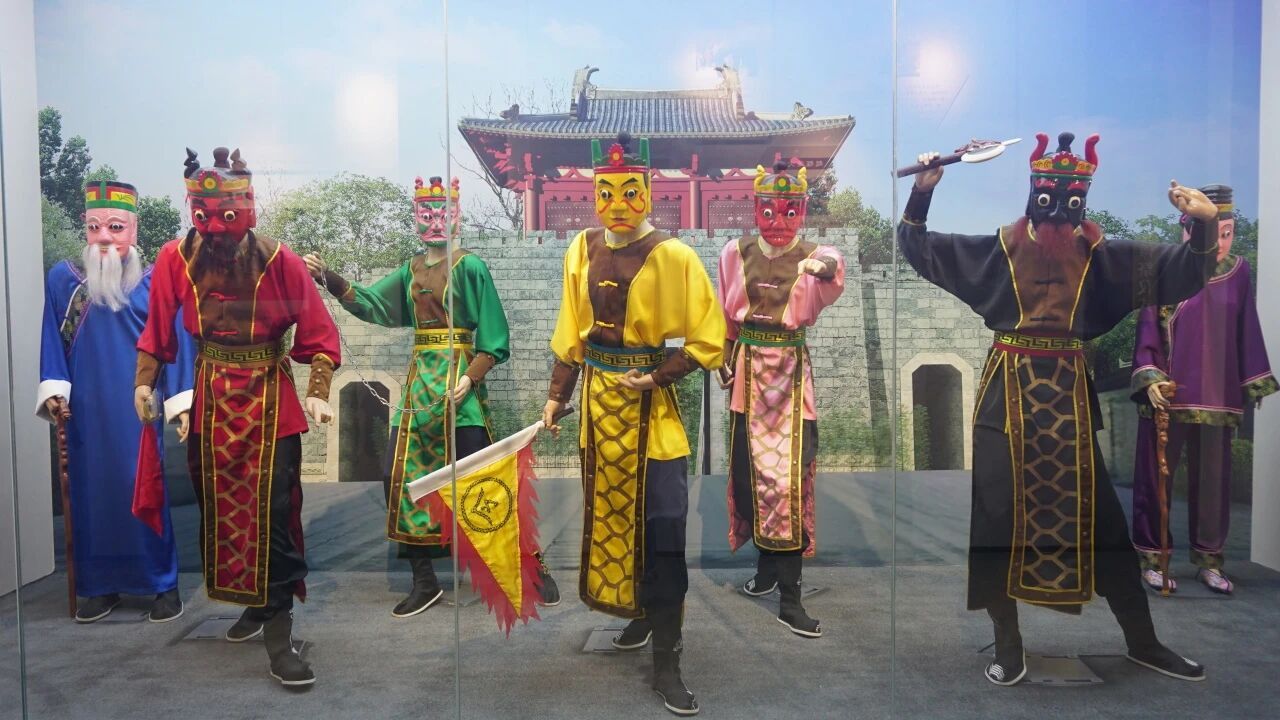 阳光斜照进旧县村湛江傩舞文化陈列馆,旧县傩舞的特色面具、道具和服装熠熠生辉。傩舞以驱邪逐疫、祈福平安为核心,每年农历正月十五及年例期间举行盛大仪式。表演者佩戴象征神将的木刻面具,代表土地公、土地婆及车、麦、李、刘、洪五员神将,手持斧、锏、链、刀、令旗等兵器,在唢呐与打击乐伴奏下演绎古朴动作。