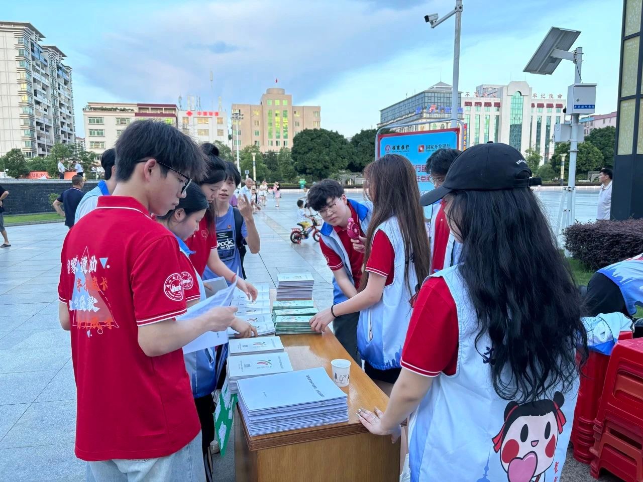 仲夏之夜,居民们纷纷走出家门,开始一天的休闲时刻。宣传活动开始前队员们提前深入学习和了解国家资助政策,做好充足的准备后前往摆摊地点。此次宣传我们选择了人流量较大的新兴县文化广场,本次活动得到了新兴县教育局的大力支持,为我们提供了场地、桌椅和宣传物品,为我们本次宣传活动顺利进行提供了保障。