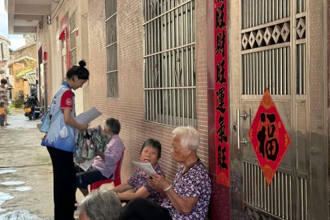 我们针对走访和谈话中了解到的村中情况以及居民实际家庭情况,有针对性地向村中不同群体介绍了资助政策。队员们立足自身经验,分别用粤语和普通话向村民们解释国家资助、绿色通道和生源地信用助学贷款的内容、申请细节、注意事项等,以帮助学生和家长更好理解政策,尽力为有需要的贫困学子提供实际帮助。