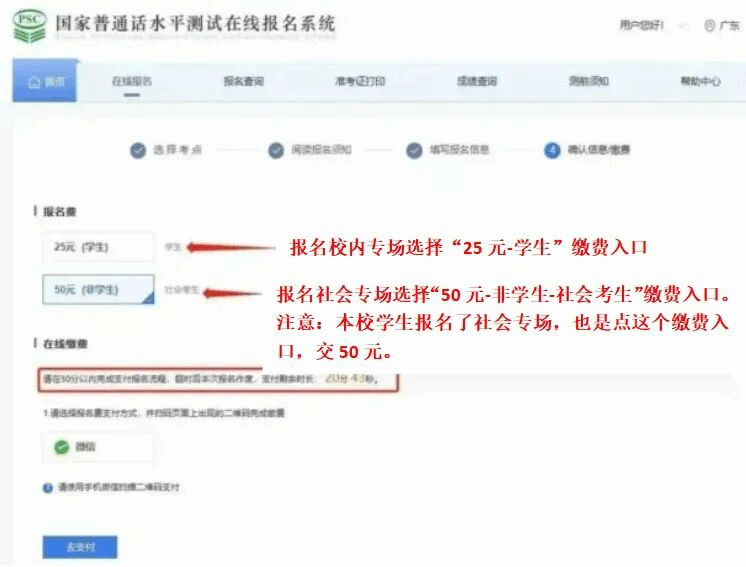 1、考生网上报名:登录广东省普通话水平测试在线报名系统(请注意分社会人士专场和校内学生专场)