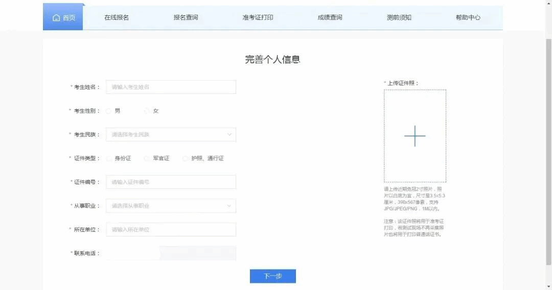 (5)身份为学生的考生须按照系统规定上传学生证明,我站将在24小时完成信息审核,请及时关注审核结果,审核通过后请在规定时间内缴费,若未通过审核,请按照审核结果进行修改提交;社会人员不需要信息审核,信息核对完成后在规定时间内完成缴费(50元)即可